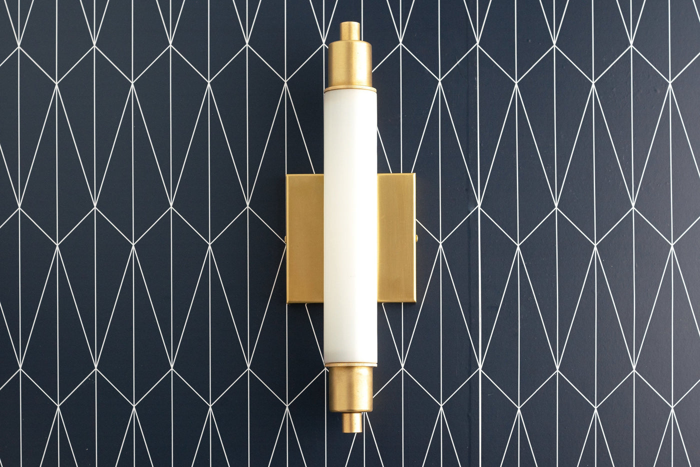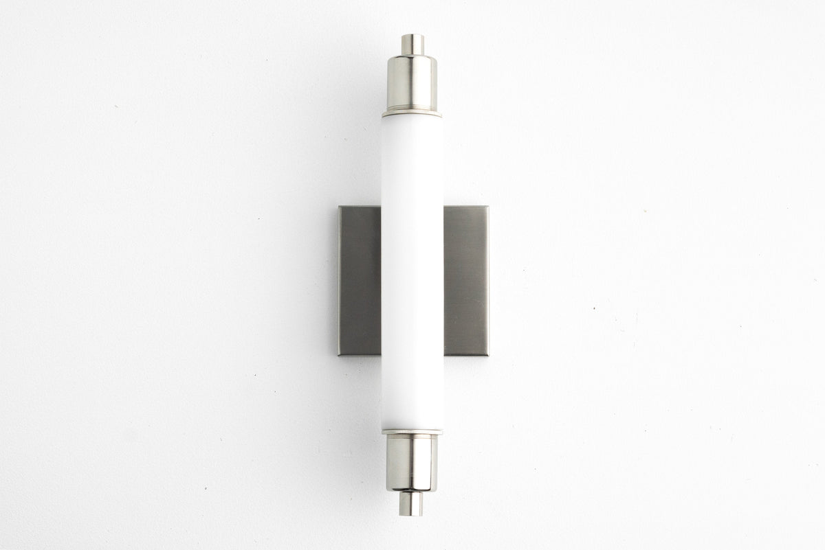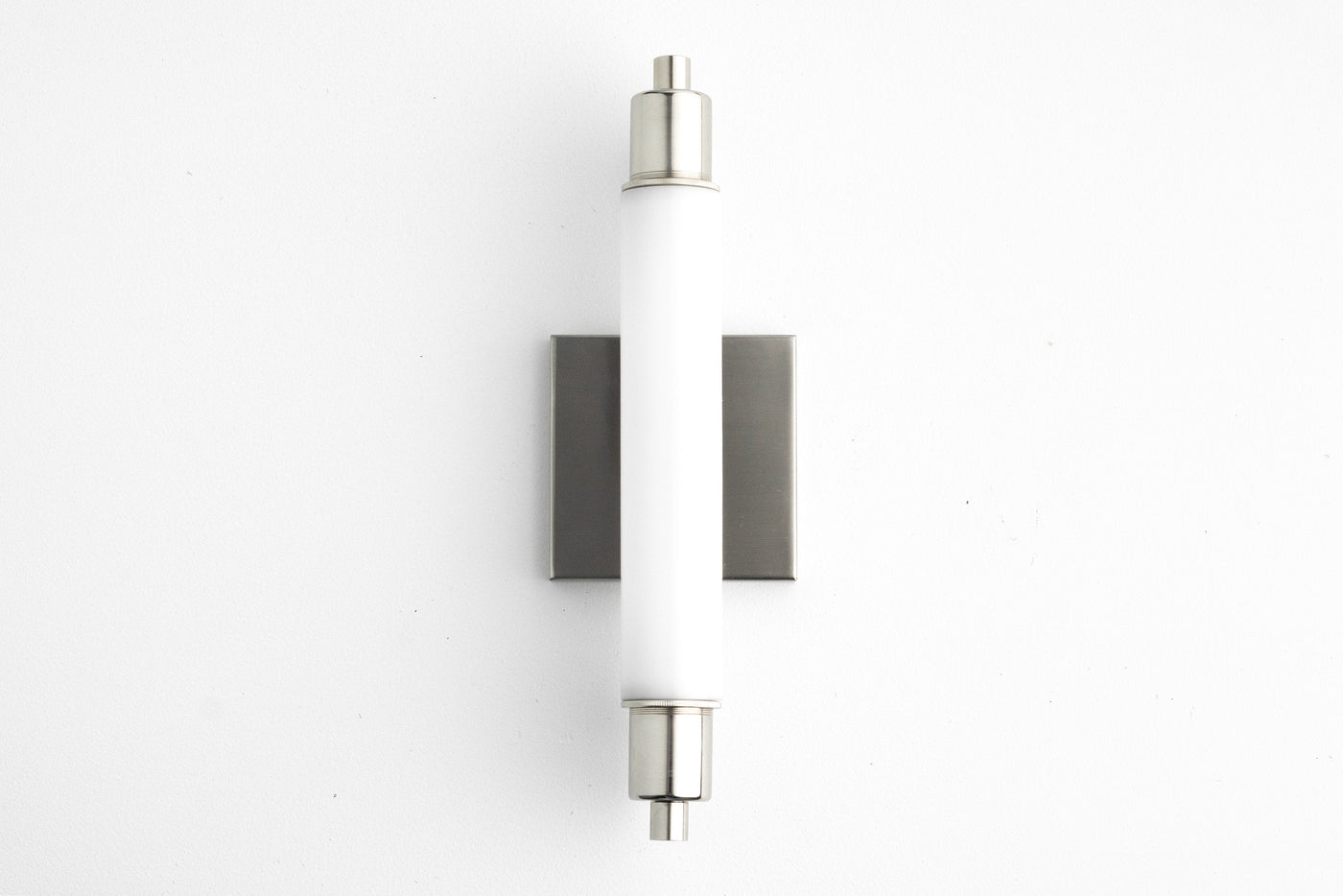 Elevate your bathroom with this modern vanity sconce featuring a high-gloss white acrylic cylinder. Inspired by Art Deco design, its clean lines and versatile mounting options make it perfect for contemporary or transitional spaces. Offered in multiple premium finishes for a personalized touch.
