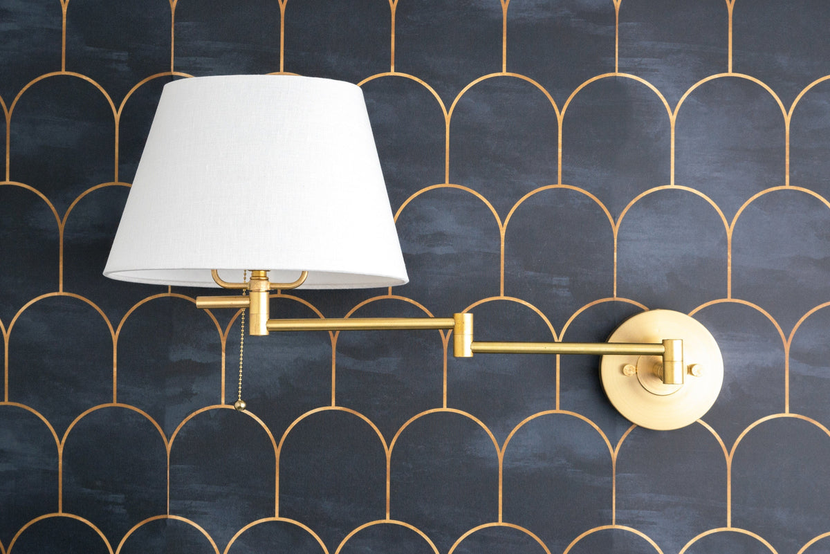 Ornato Luxe Brass Schoolhouse Sconce - Art Deco Wall Light with White Glass Shade - 15" / 38.1 cm / Sealed Brass / Direct to Wall