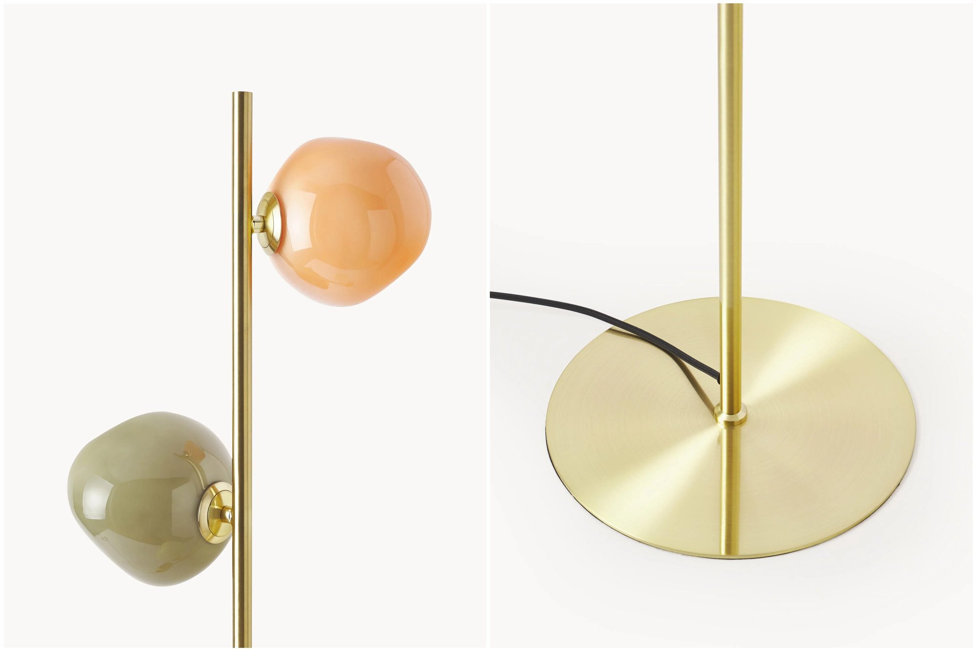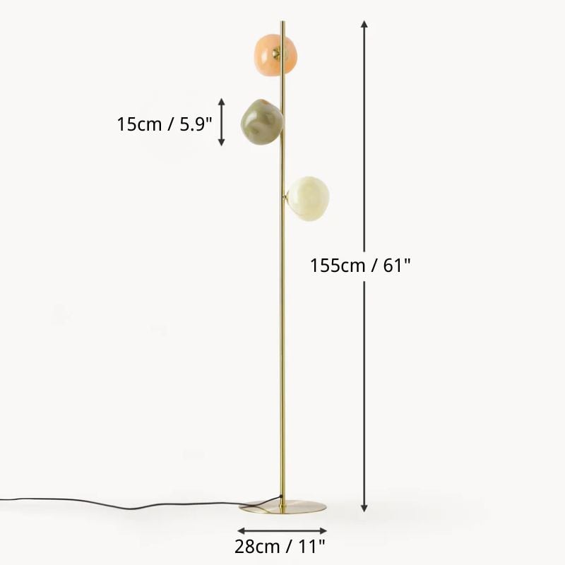 This floor lamp features three opal glass lampshades in soothing cream white, light green, and apricot hues, which emit a soft, diffused glow to create a warm and inviting ambiance. Perfect for living rooms, bedrooms, or reading nooks, this floor lamp serves as both a functional light source and a stylish decor piece. Its unique design and high-quality materials make it an ideal choice for modern interiors seeking a blend of aesthetics and practicality.