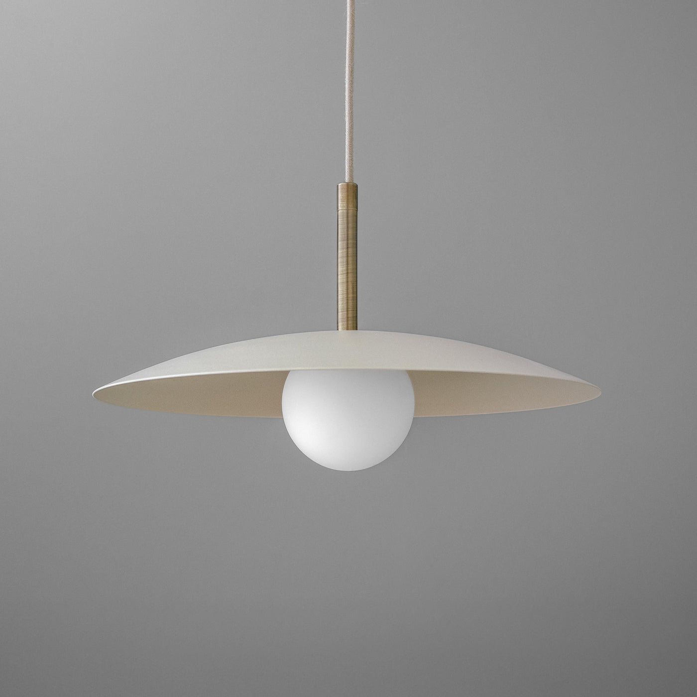 Curva Metal Minimalist Pendant Light - Modern Brass Accent Disc Shade - 12" / 30.48 cm / Antique Brass / White