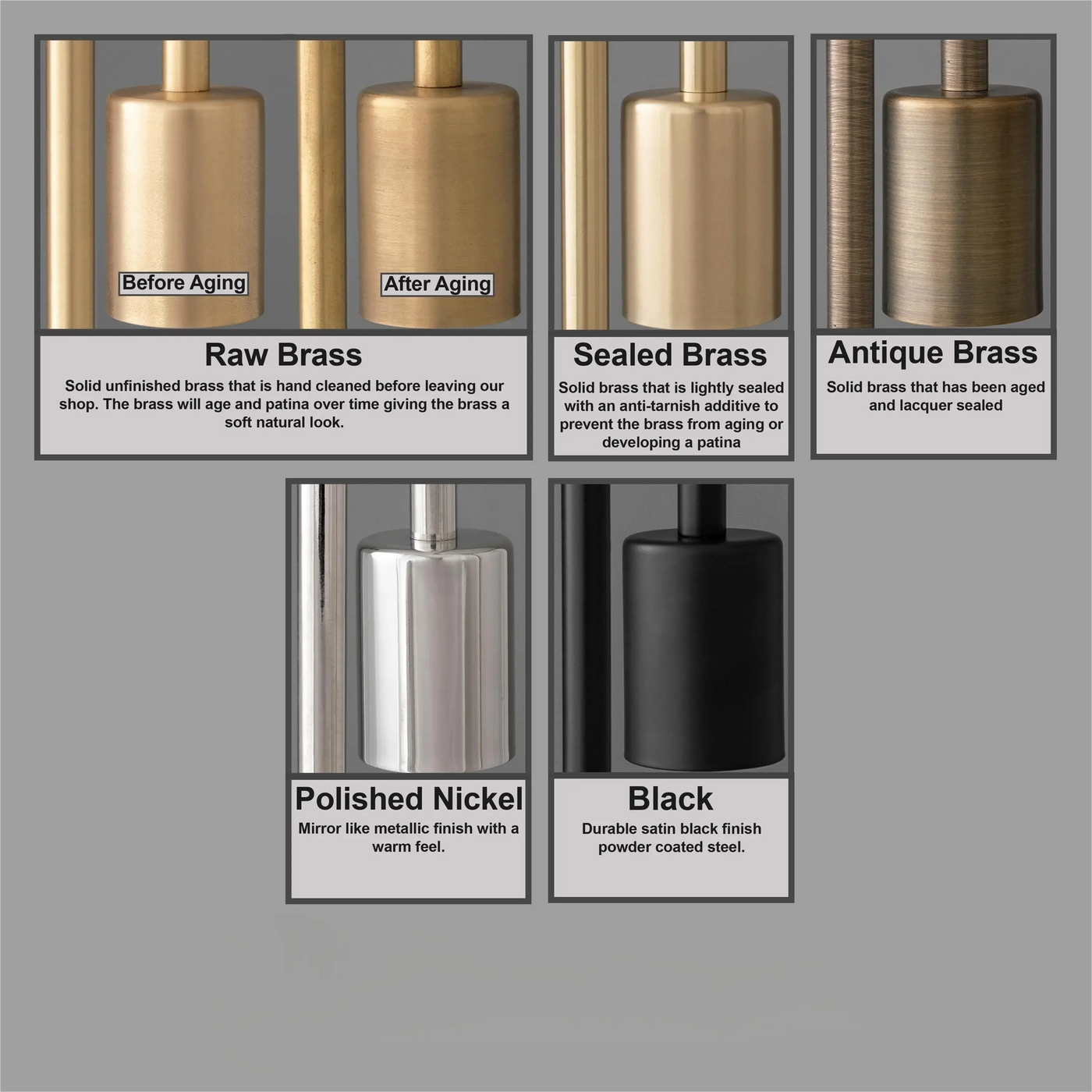 - Raw Brass - features solid unfinished brass that is hand cleaned before leaving our shop. The brass will age and patina over time giving the finish a soft natural look.